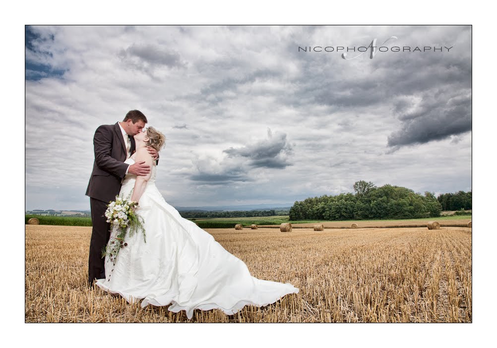 Cette magnifique région, pleine de champs de blé offrait un paysage bucolique pour cette photo de Virginie et Thierry.